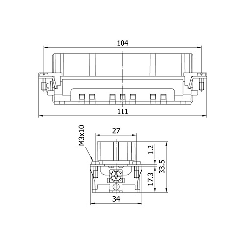 METECON Insert -E Series , 24P+E, Spring Termination, Female, Back Entry, 16 A, 400V, 6kV, Size:24B, Contacts:24P, PBT / PC, Connector Material: Brass (Silver Plated), Grey - RAL 7044 Cable Cross Section: 0.14 ... 2.5 mm²