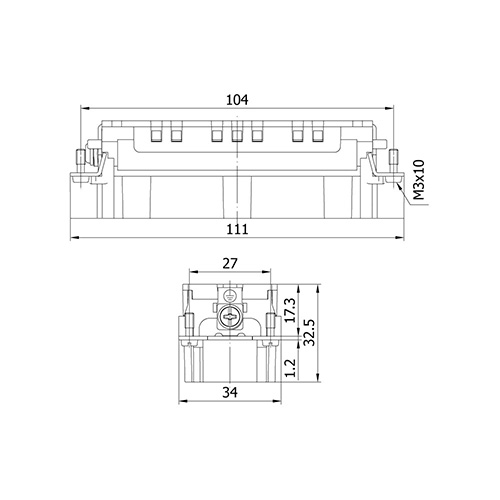 METECON Insert -E Series , 48P+E, Crimp Termination, Male, Back Entry, 16 A, 400V, 6kV, Size:48B, Contacts:48P, PBT / PC, Connector Material: Brass (Silver Plated), Grey - RAL 7044 Cable Cross Section: 0,5 4.0 mm²
