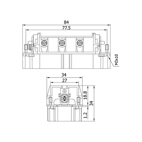 METECON Insert -HSB Series , 12P+E, Screw termination, Male, Back Entry, 35 A, 400 V /690 V, 6kV, Size:32B, Contacts:12P, PBT, Connector Material: Brass (Silver Plated), Grey - RAL 7044 Cable Cross Section: 1.5...6 mm²
