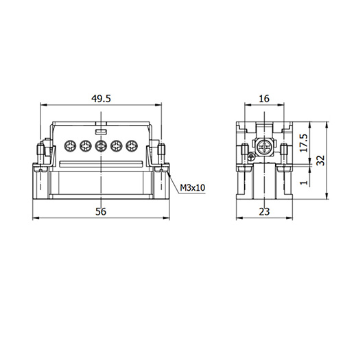 METECON Insert -A Series , 10P+E, Screw termination, Male, Back Entry, 16 A, 250/400 V, 4 kV, Size:10A, Contacts:10P, Polycarbonate (PC), Connector Material: Brass (Silver Plated), Grey - RAL 7044 Cable Cross Section: 1.0 ... 2.5 mm²