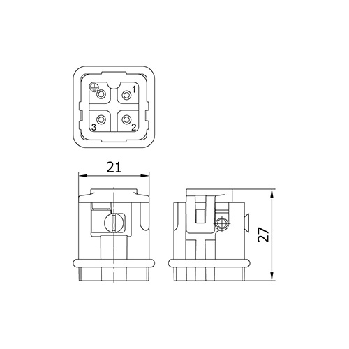METECON Insert -A Series , 3P+E, Screw termination, Male, Side Entry, 10 A, 250/400 V, 4 kV, Size:3A, Contacts:3P, Polycarbonate (PC), Connector Material: Brass (Silver Plated), Grey - RAL 7044 Cable Cross Section: 1.0 ... 2.5 mm²