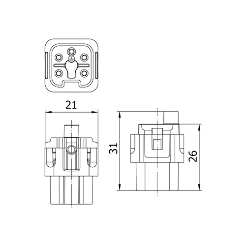 METECON Insert -A Series , 4P+E, Screw termination, Female, Side Entry, 10 A, 250/400 V, 4 kV, Size:3A, Contacts:4P, Polycarbonate (PC), Connector Material: Brass (Silver Plated), Grey - RAL 7044 Cable Cross Section: 1.0 ... 2.5 mm²