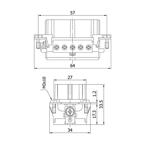METECON Insert -E Series , 10P+E, Screw termination, Female, Back Entry, 16 A, 400V, 6kV, Size:10B, Contacts:10P, PBT, Connector Material: Brass (Silver Plated), Grey - RAL 7044 Cable Cross Section: 1.0 ... 2.5 mm²