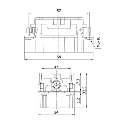 METECON Insert -E Series , 10P+E, Spring Termination, Male, Back Entry, 16 A, 400V, 6kV, Size:10B, Contacts:10P, PBT / PC, Connector Material: Brass (Silver Plated), Grey - RAL 7044 Cable Cross Section: 0.14 ... 2.5 mm²