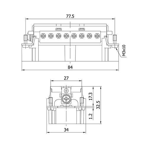 METECON Insert -E Series , 16P+E, Screw termination, Male, Back Entry, 16 A, 400V, 6kV, Size:16B, Contacts:16P, PBT, Connector Material: Brass (Silver Plated), Grey - RAL 7044 Cable Cross Section: 1.0 ... 2.5 mm²