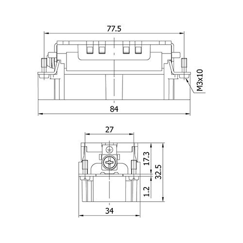METECON Insert -E Series , 16P+E, Spring Termination, Male, Back Entry, 16 A, 400V, 6kV, Size:16B, Contacts:16P, PBT / PC, Connector Material: Brass (Silver Plated), Grey - RAL 7044 Cable Cross Section: 0.14 ... 2.5 mm²