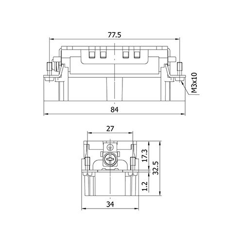 METECON Insert -E Series , 32P+E, Spring Termination, Male, Back Entry, 16 A, 400V, 6kV, Size:32B, Contacts:32P, PBT / PC, Connector Material: Brass (Silver Plated), Grey - RAL 7044 Cable Cross Section: 0.14 ... 2.5 mm²