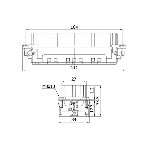 METECON Insert -E Series , 48P+E, Crimp Termination, Female, Back Entry, 16 A, 400V, 6kV, Size:48B, Contacts:48P, PBT / PC, Connector Material: Brass (Silver Plated), Grey - RAL 7044 Cable Cross Section: 0,5 4.0 mm²