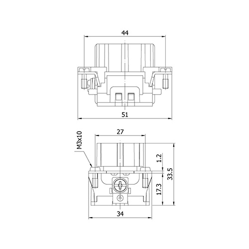 METECON Insert -E Series , 6P+E, Crimp Termination, Female, Back Entry, 16 A, 400V, 6kV, Size:6B, Contacts:6P, PBT / PC, Connector Material: Brass (Silver Plated), Grey - RAL 7044 Cable Cross Section: 0,5 4.0 mm²